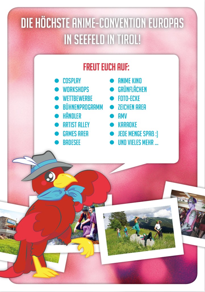 Die höchste Anime-Con Europas findet vom 8-9. Juli in Seefeld statt. Viele von uns werden dort mitmachen, sei es als Orga, Helfer oder Spielleiter. Kommt hin und genießt einfach die tolle Con!