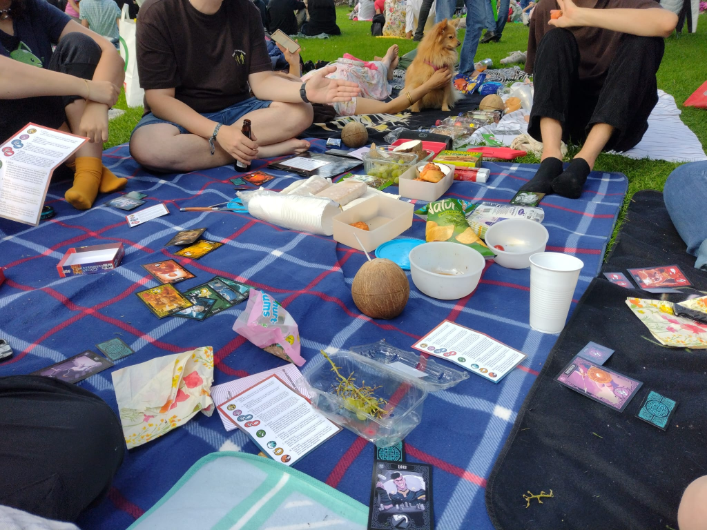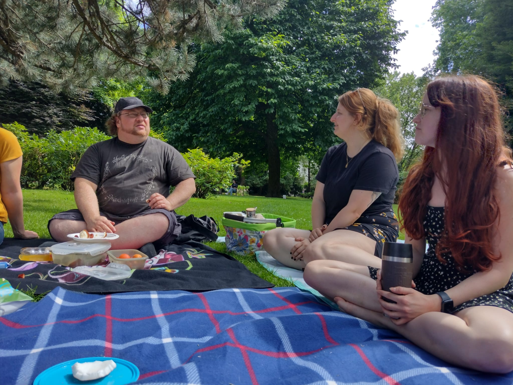 Insgesamt waren wir beim Picknick 17 Leute und hatten sehr viel Spaß. Wir hatten interessante Gespräche über Rollenspiele, Musik und alles andere 😊 Ich fand es super angenehm auch mal einfach nur so mit den Leuten zu plaudern, denn es waren einige dabei, die ich bisher nur vom RPG-Treff kannte und da war ich noch nicht dazugekommen so richtig mit ihnen zu reden.