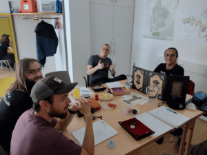 Ich leitete diesmal das deutsche Fantasy System „Splittermond“ und irgendwie landeten die drei Rollenspiel-Neulinge bei mir. Also kürzte ich kurzerhand das Abenteuer, damit etwas mehr Zeit für Erklärungen blieb. Und den großen Kampf in der Mitte des Abenteuers haben die Spieler voll gefeiert, auch wenn fast alles schief ging, was schief gehen konnte: Die Feuermagierin hat sich selber verletzt, einen Gefährten aus Versehen mit einem Flammenstrahl getroffen und das Schwert des Ritters aus Versehen geschmolzen. Ein Armbrustbolzen traf noch unseren Wildniskundigen in den Rücken, natürlich versehentlich. Und das alles bei den schwächsten Gegnern im System! Und dann kam das Monster und die Spieler begannen so richtig, richtig gut zu würfeln. Eigentlich hätten sie das Monster ja nicht töten können, aber ja… Dinge passieren 😊 Wir hatten auf jeden Fall alle viel Spaß und die drei neuen bekamen einen ersten Eindruck von Pen & Paper und waren sehr begeistert 😊