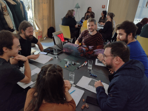 Thomas leitete ein Abenteuer im Hollywood der 70er Jahre im System Dread. Dieses System verwendet keine Würfel, sondern benutzt einen Jenga-Turm für die spannenden Momente: „Wenn der Turm fällt, bist du tot.“ Eine Gruppe, die sich gleich in drei Gruppen aufgeteilt hat, Vampire und zuletzt ein großes Feuer – und das bei nur vier Toten 😊