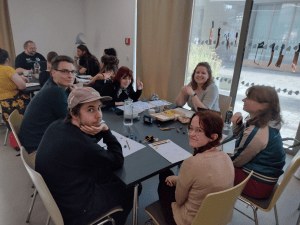 Bevor wir die Spielrunden vorstellten und uns verteilten, durfte ich noch auf die nächsten Veranstaltungen des Vereins aufmerksam machen. Am 31. 10. Findet die RIuT-Halloween-Party inklusive Kostümwettbewerb statt! Im November sind wir vom 24. – 26.11. auf der SPIEL-AKTIV in der Innsbrucker Messe mit einem Stand vertreten und am 24.11. auch gleichzeitig bei einem Promo-Abend in der Stadtbibliothek aktiv. Am 17.11. veranstalten wir wieder zwei Einsteigersessions (es sind noch 2 Plätze frei) für Neulinge und am 17.12. findet dann unser Weihnachts-RPG-Treff (im Stadtteiltreff Pradl) statt. Dann war es endlich so weit: Regina, Thomas, David, Martin und ich stellten unsere Abenteuer kurz vor und die Spieler:innen verteilten sich auf die fünf Spielinseln.