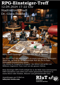Am 19. 01. 2024 veranstalteten wir zum dritten Mal einen Einsteiger-RPG-Treff. Bei diesem speziellen Termin führen wir Neulinge in die Welt von Pen & Paper ein. Dafür verwenden wir Dungeons & Dragons mit einem Einsteigerabenteuer bei dem die Spieler:innen viele Facetten des Spiels kennen lernen. Die Spielleitung und Einführung übernahmen wieder Martin und ich (Norbert).