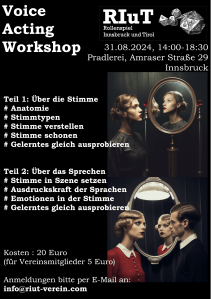 Der Verein RIuT hat dieses Jahr wieder ein besonderes Schmankerl für die Tiroler Rollenspiel-Community im Angebot: Am 31. August veranstalten wir erneut den Voice-Acting Workshop von und mit Marc Rahn!