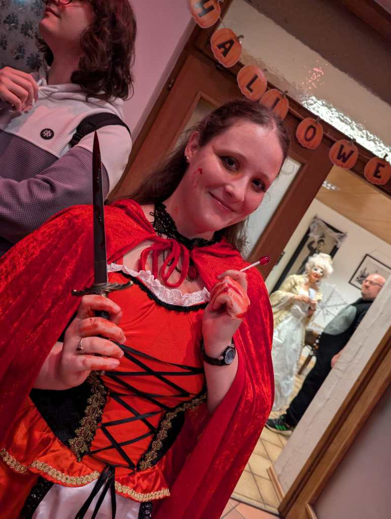 - Fledermaus – Ein klassisches und stimmungsvolles Kostüm, das perfekt zur Halloween-Nacht passte. Die Fledermaus erhielt als Preis Call of Cthulhu 7. Edition – ein Klassiker für düstere Rollenspielabende.