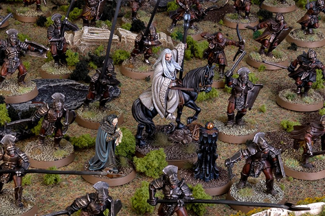 Herr der Ringe Tabletop-Miniaturenspiel, in dem Spieler Szenarien und Schlachten aus Tolkiens Mittelerde mit Helden, Armeen und Monstern nachspielen.